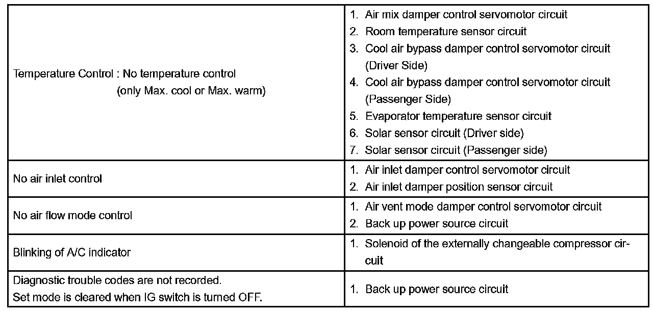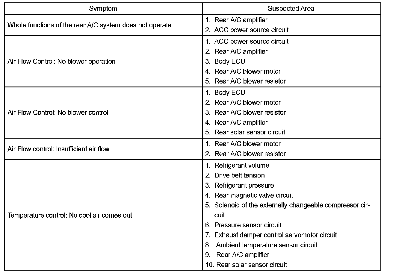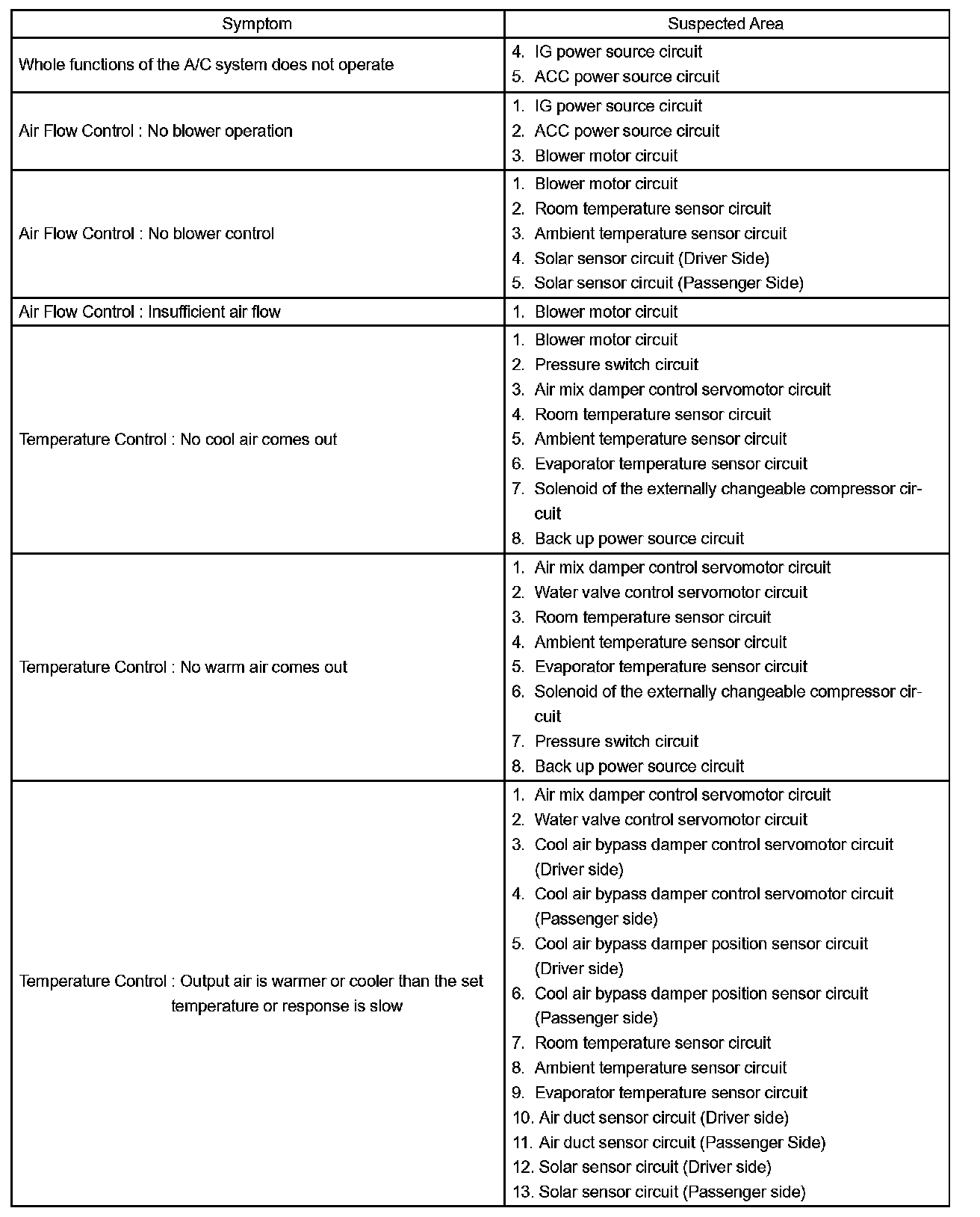 PROBLEM SYMPTOMS TABLEProblem Symptoms Table - Front A/C Part 1:
