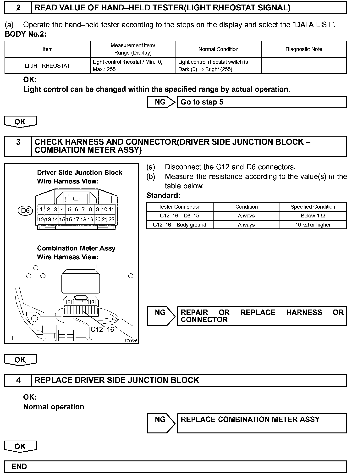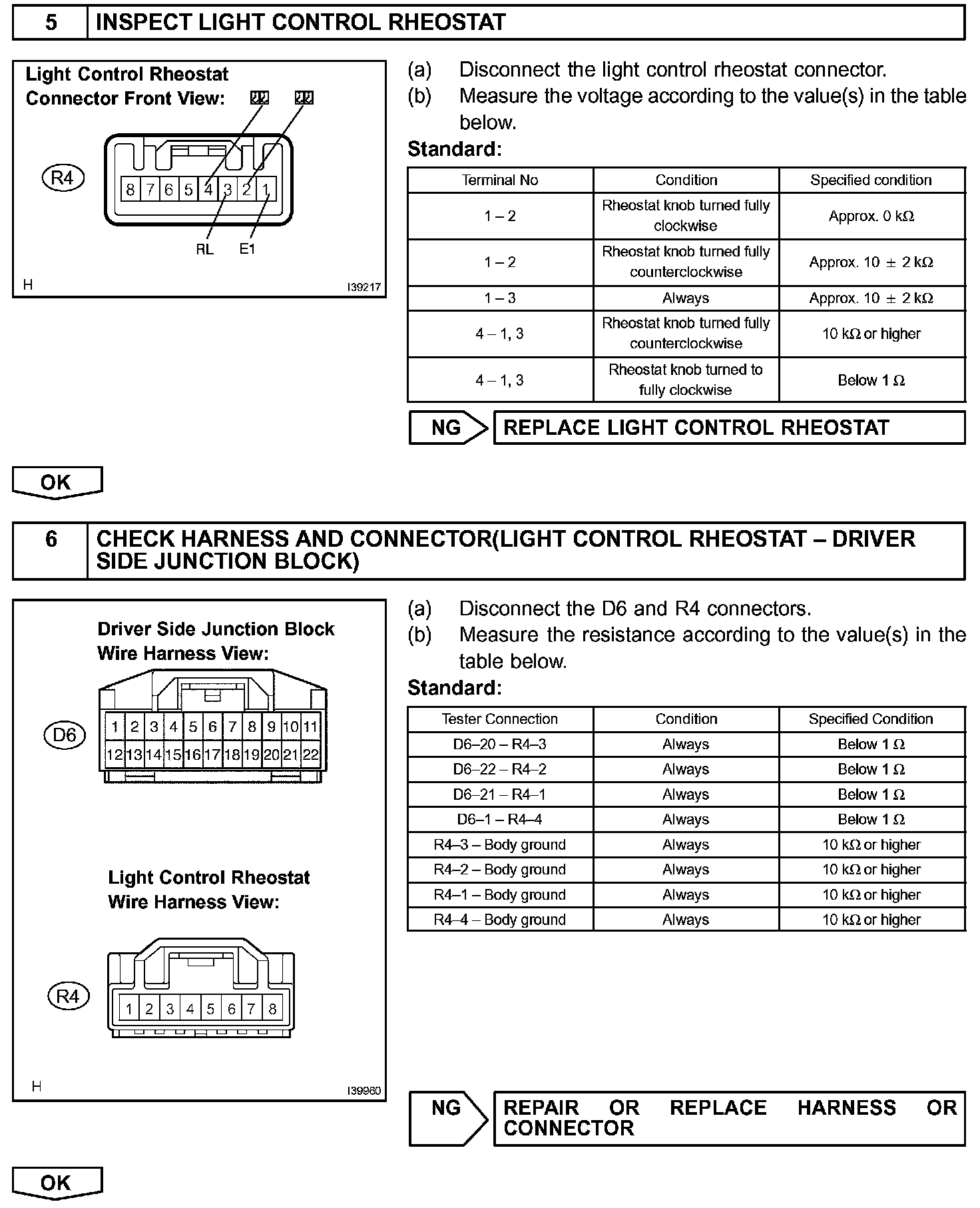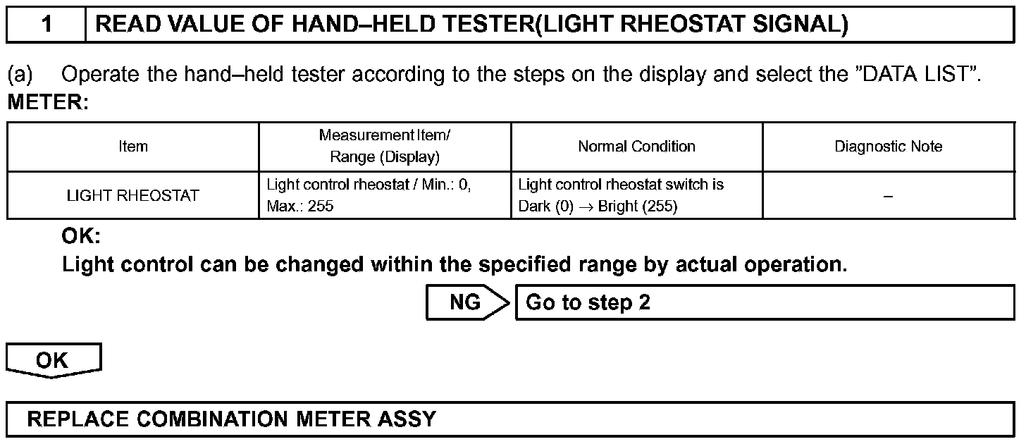 OPERATING LIGHT CONTROL RHEOSTAT DOES NOT CHANGE LIGHT BRIGHTNESS
