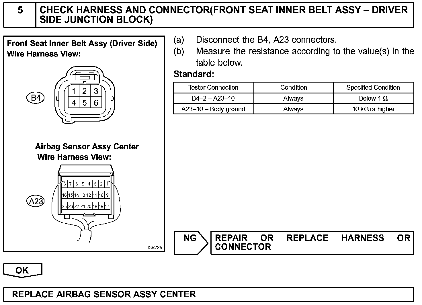 HINT: If there is an open in the ground circuit (Airbag sensor assy center), the airbag sensor assy center outputs DTCs. Perform troubleshooting with the "Supplemental Restraint System".
