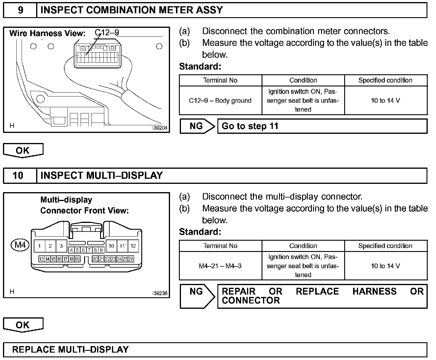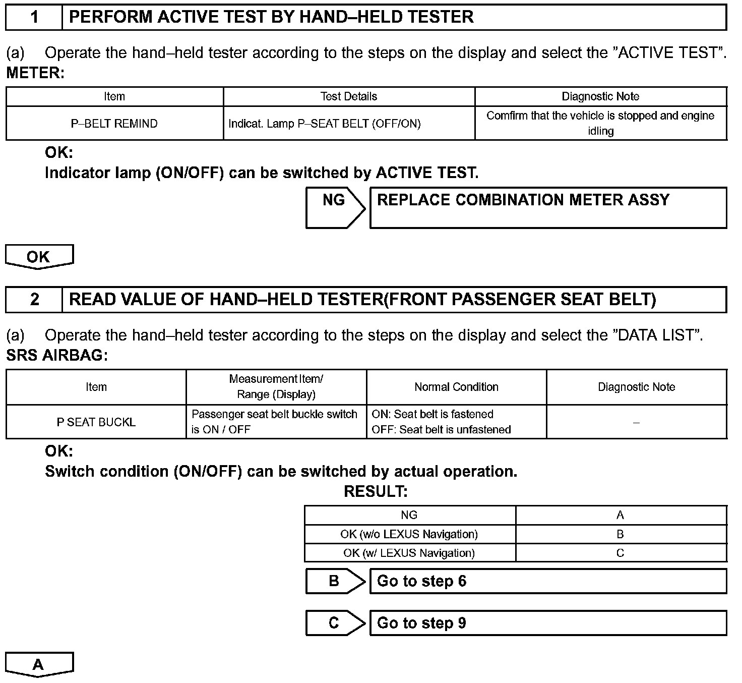 HINT: Display except for the seat belt warning indicator are shown in the navigation system and A/C system.
