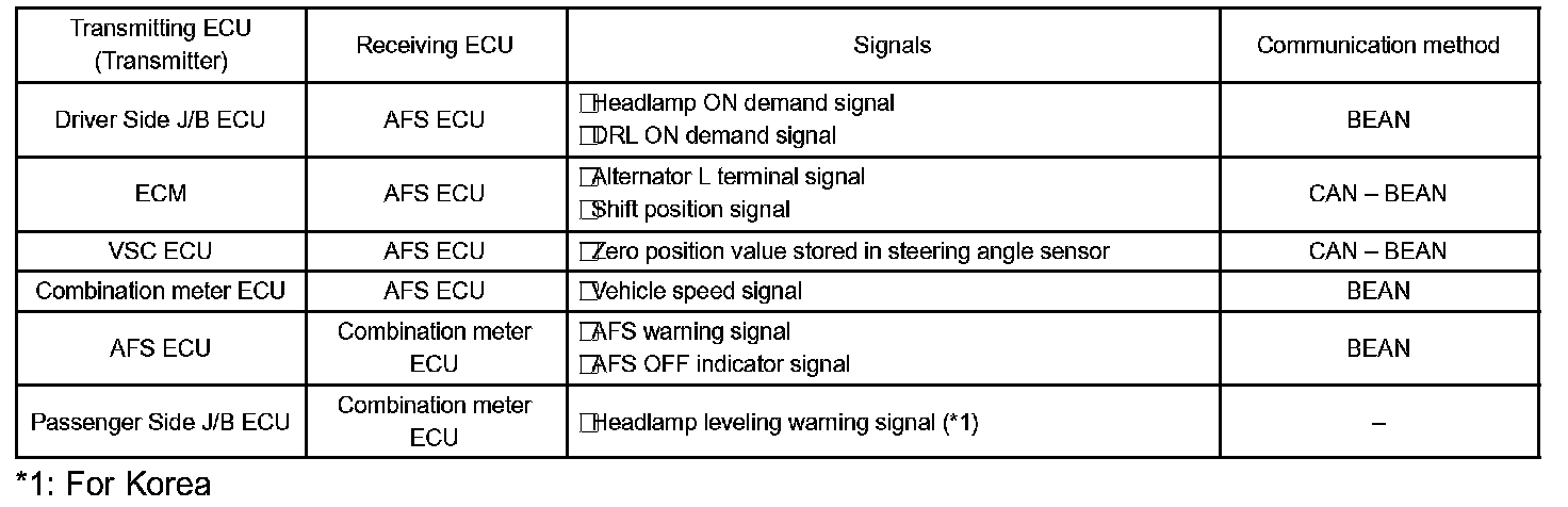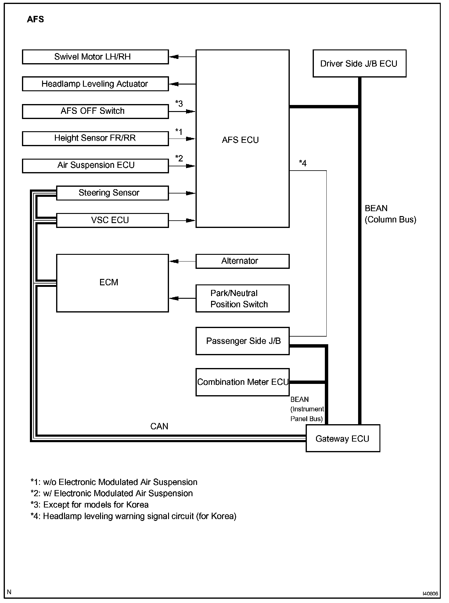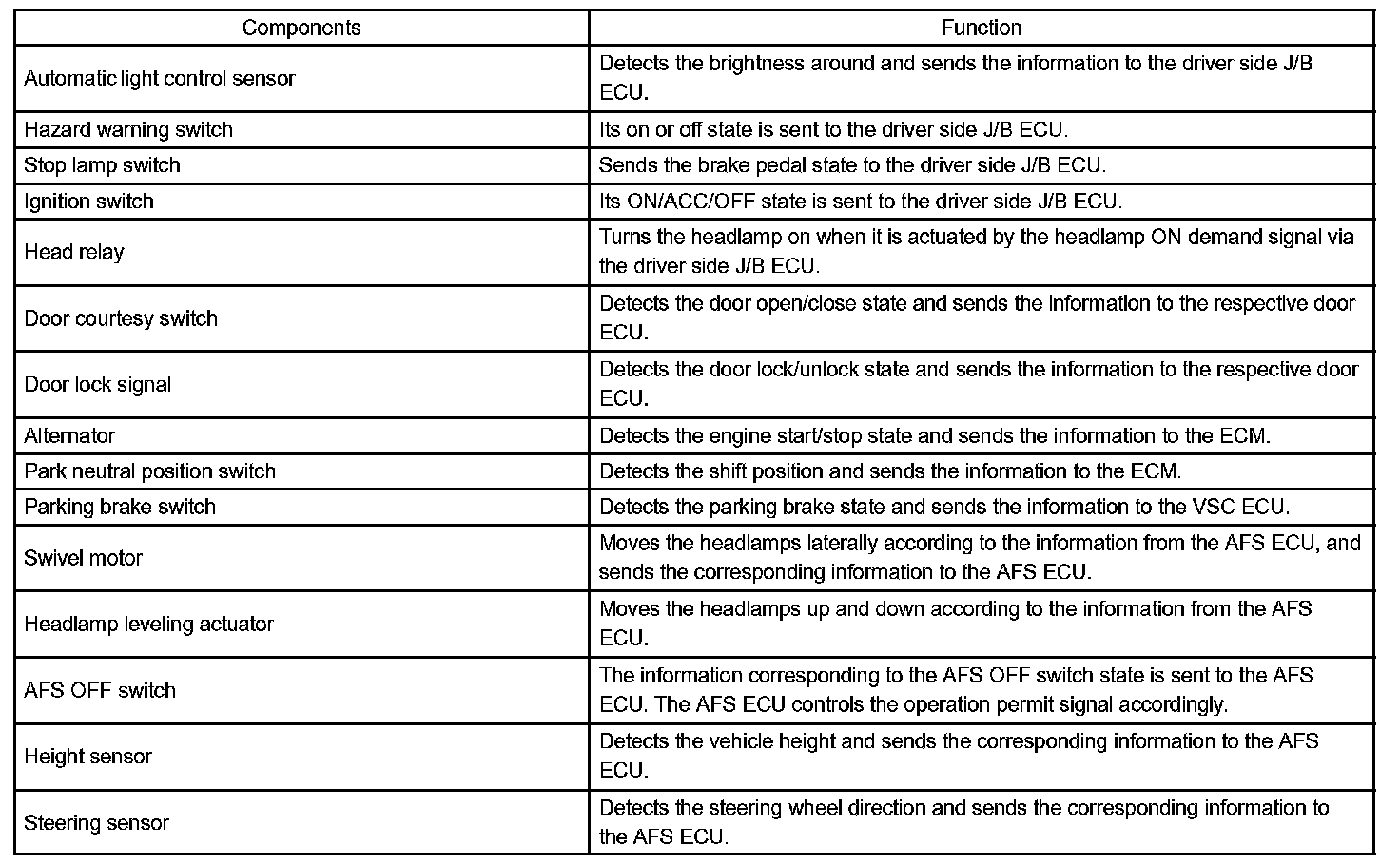 3. The AFS ECU controls the following based on the signals listed in (2):