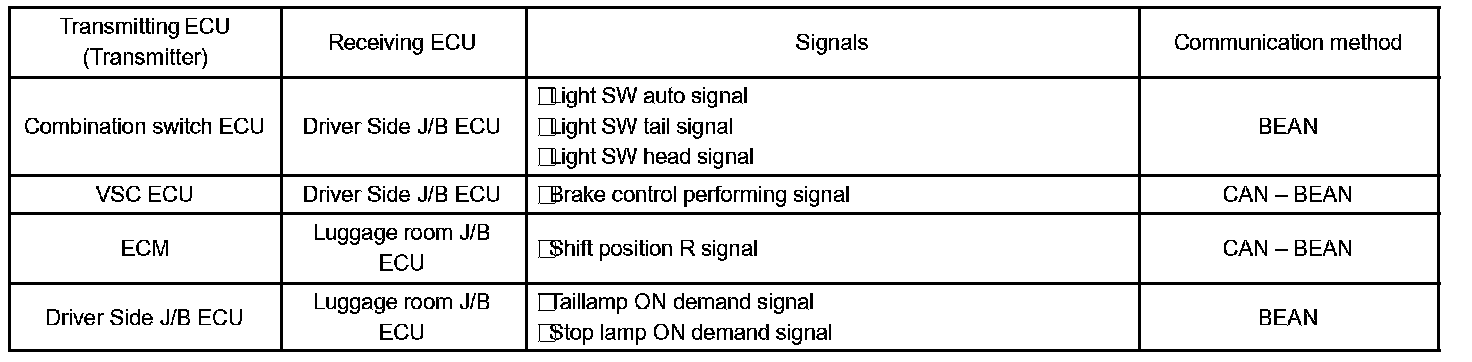 Input And Output Signals Of Each ECU - Rear Lighting System: