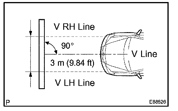- Make a distance of 3 m (9.84 ft) between the headlamps and the paper. Place the paper against a wall with the H line at the same height as the center mark.