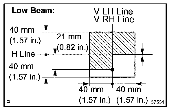 3. Turn on the headlamps and check that the aim is within the specified range shown in the illustration.