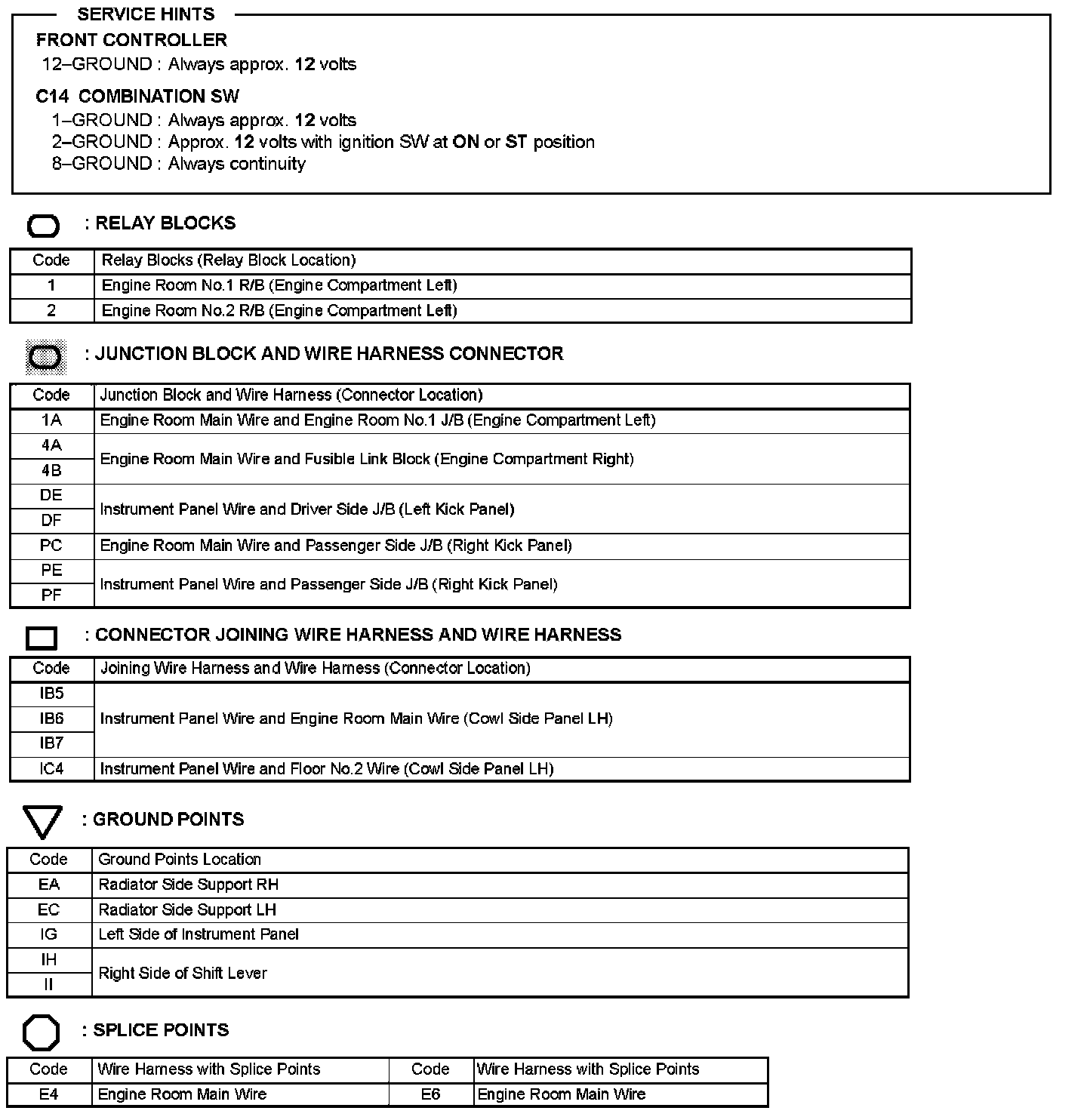 Locations: The locations of components, connectors, ground points, and splices referred to within these diagrams can be found at Vehicle Locations. Locations