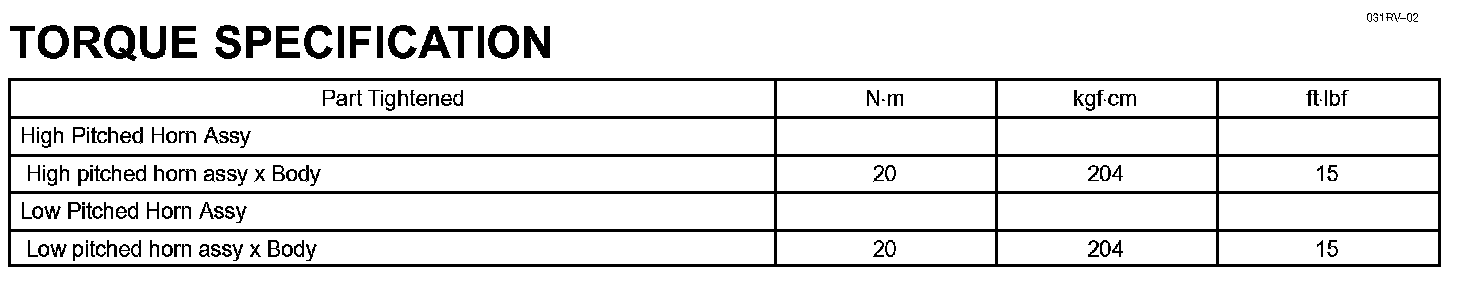 Horn - Torque Specification: