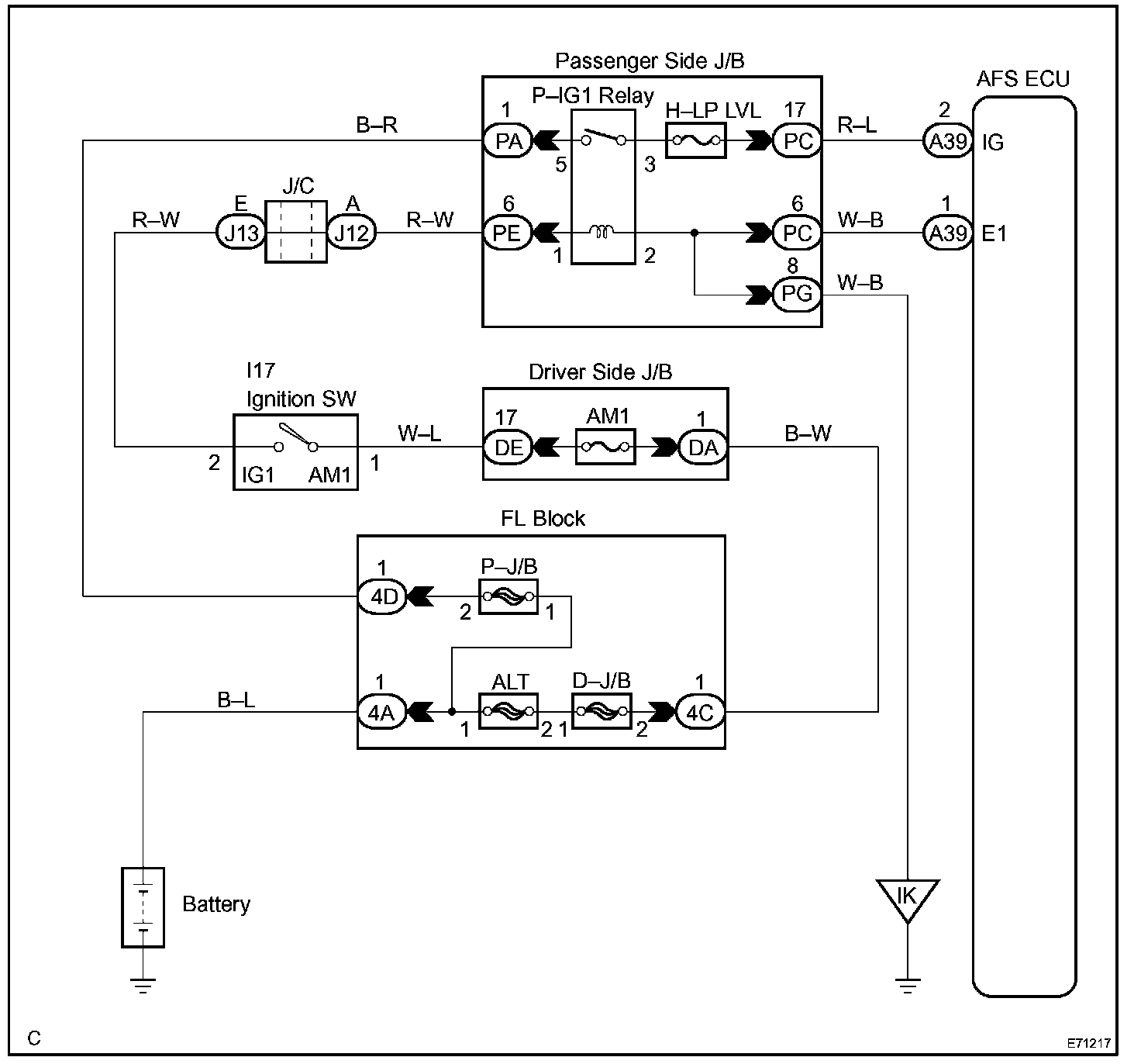 This circuit detects the state of the ignition switch. The AFS ECU receives it from the ignition switch.