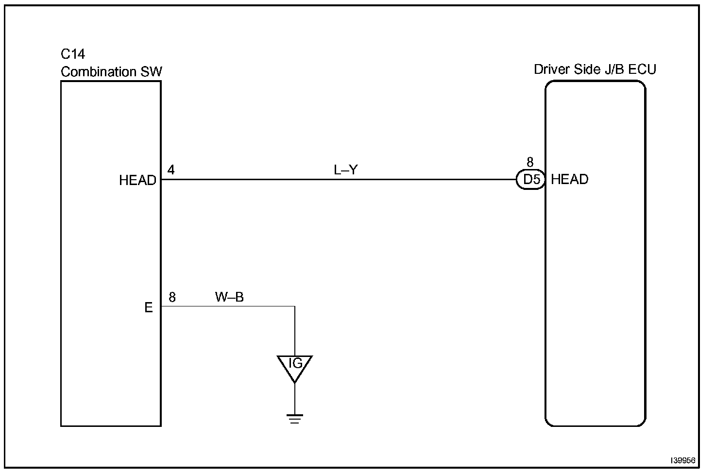 The driver side J/B ECU receives the HEAD position signal of light control switch to operate the HEAD relay. The HEAD position signal is also transmitted to the driver side J/B ECU by the multiplex network communication system and the back-up communication bus.