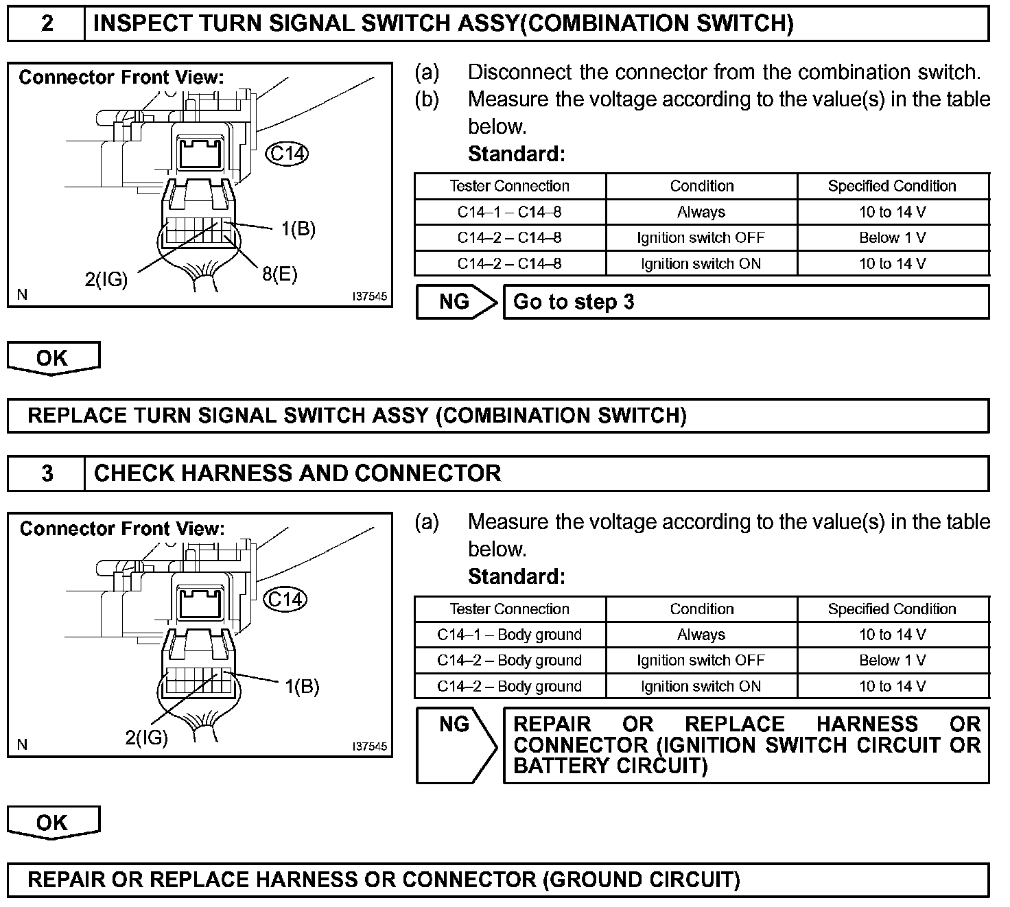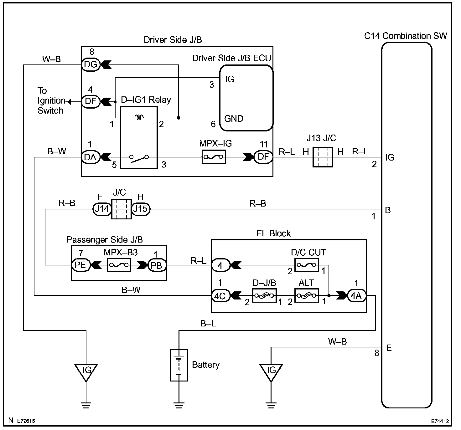 This circuit provides power to operate the combination switch. The signals produced by operating the manual switch are sent to the passenger side J/B ECU.