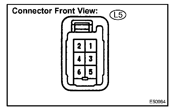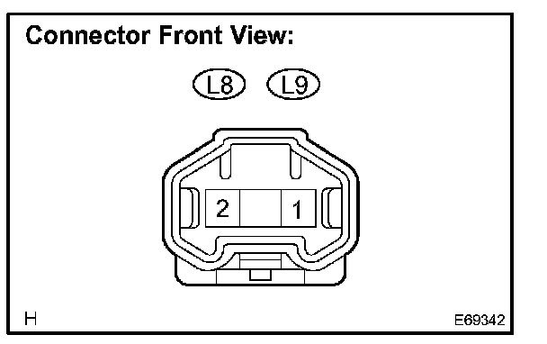 1. Connect the (+) lead from the battery to terminal 2 and the (-) lead to terminal 1, then check that the luggage room compartment lamp comes on.