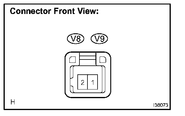 a. Connect the (+) lead from the battery to terminal 2 and the (-) lead to terminal 1, and check that the rear vanity light comes on when the cover is opened.