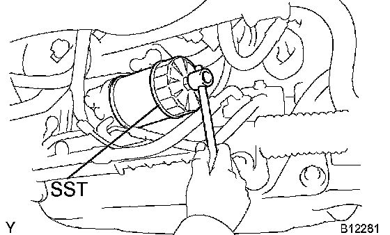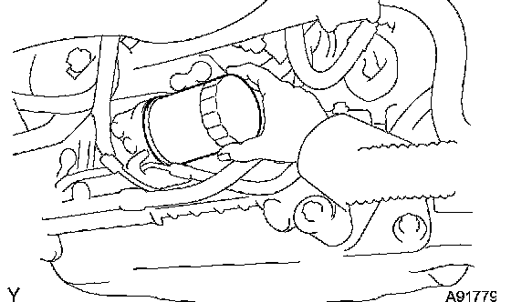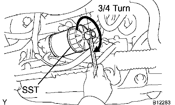 If not enough space is available to use torque wrench, tighten the oil filter a 3/4 turn by hand or a common wrench.