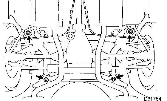 b. Tighten the front suspension lower cross member-to body mounting nuts.