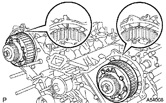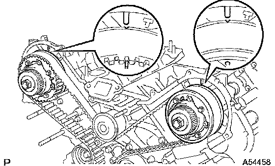 HINT: Turn the camshaft timing pulleys slightly clockwise to make installation of the timing belt easier.
