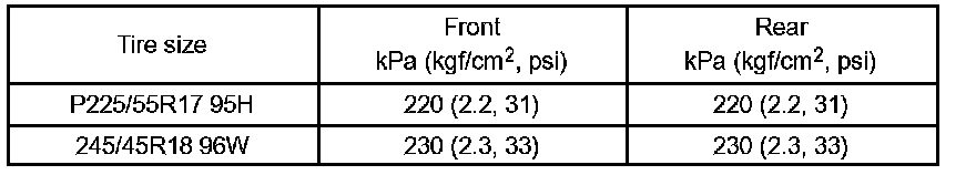 Cold tire inflation pressure
