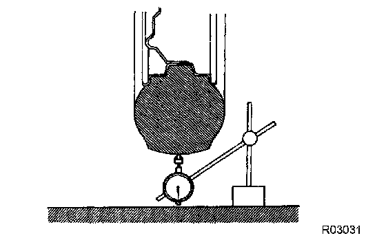 b. Using a dial indicator, check the tire runout.