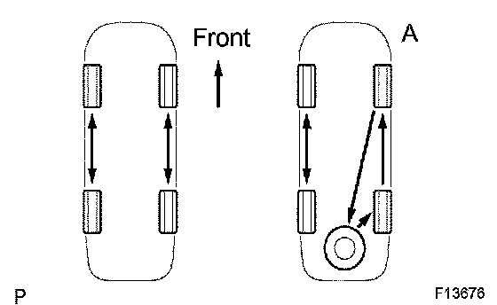 ^ Rotate as shown in (A) if the spare tire is included in the rotation.