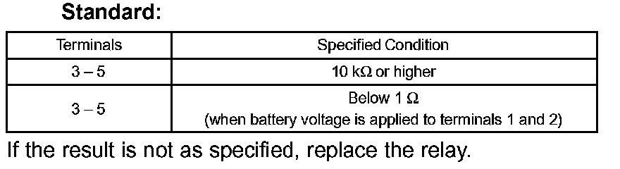 1. Apply battery voltage across terminals 1 (+B) and 2 (E2G).