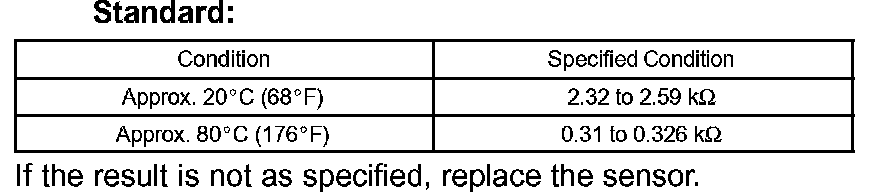 NOTE: If checking the ECT sensor in the water, keep the terminals dry. After the check, wipe the sensor dry.