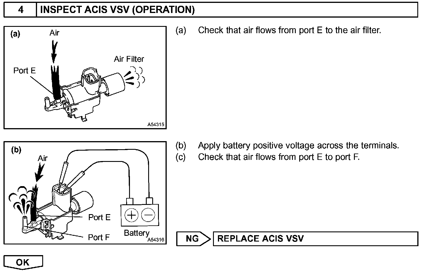 CIRCUIT DESCRIPTIONThis circuit opens and closes the Intake Air Control Valve (IACV) in response to the engine load in order to increase the intake efficiency (ACIS: Acoustic Control Induction System).