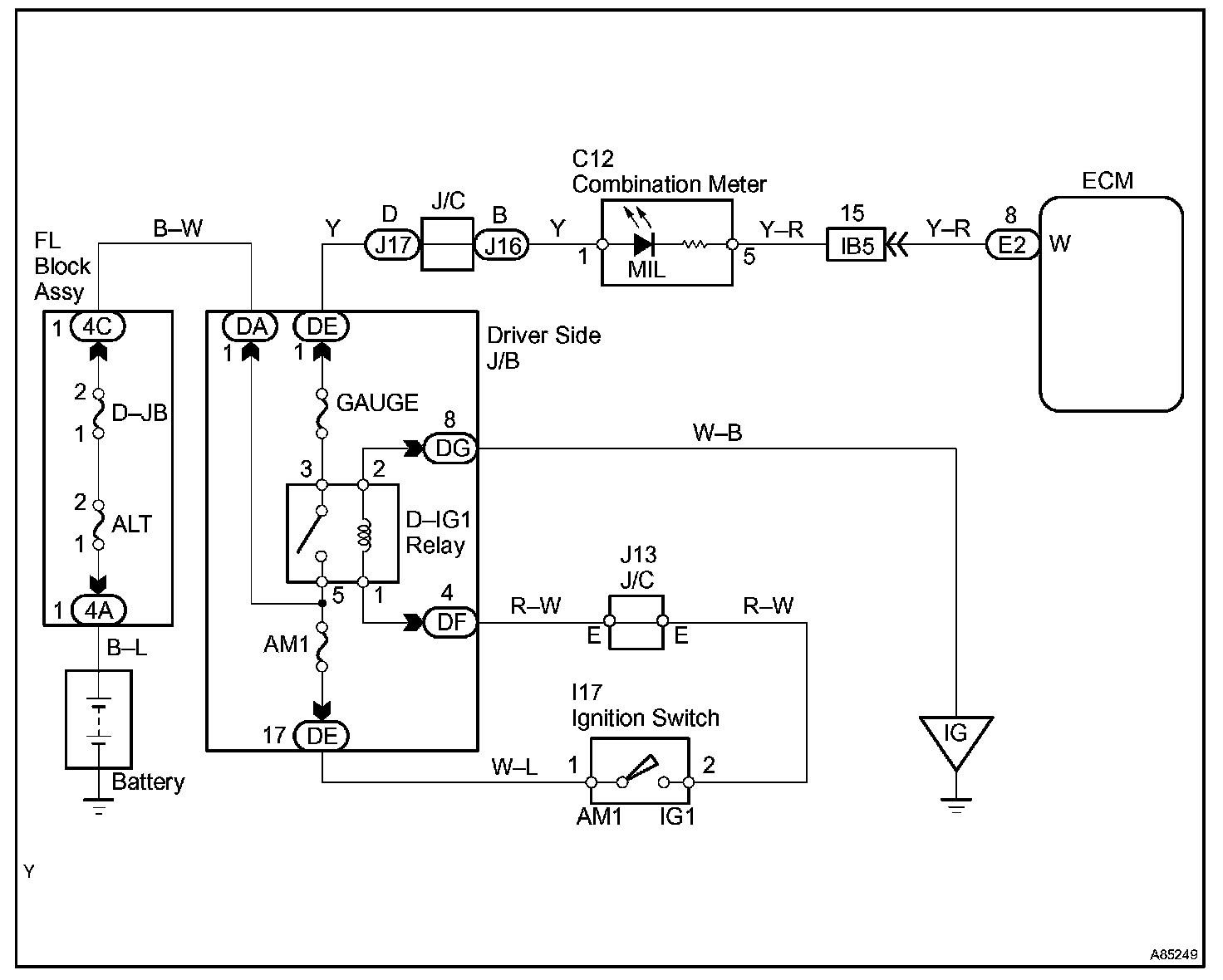 CIRCUIT DESCRIPTIONThe Malfunction Indicator Lamp (MIL) is used to indicate the ECM's detection of a vehicle malfunction. The instrument panel GAUGE fuse provides the circuit with power and the ECM provides the circuit ground that illuminates the MIL.