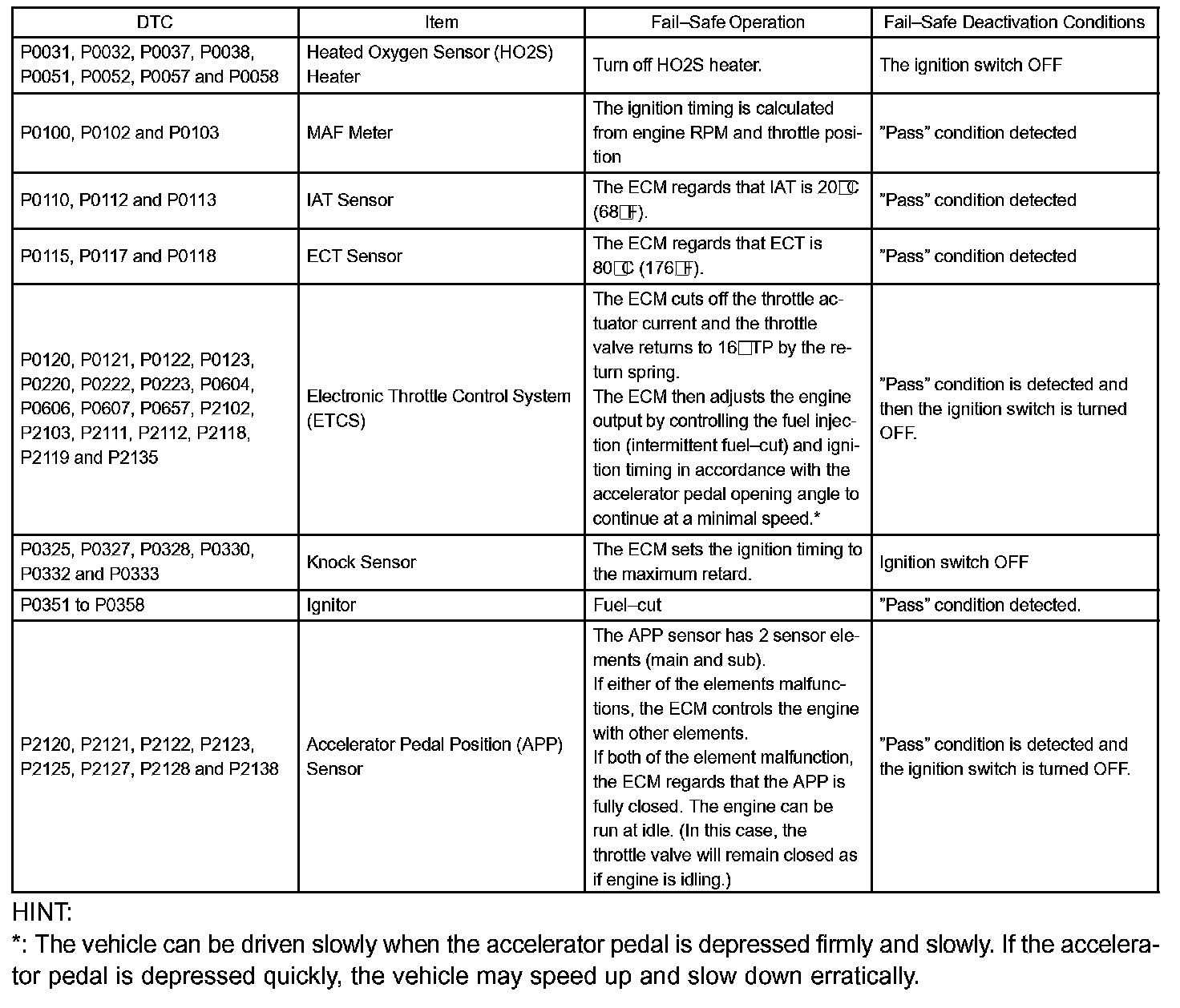 If any of the following codes are recorded, the ECM enters fail-safe mode.