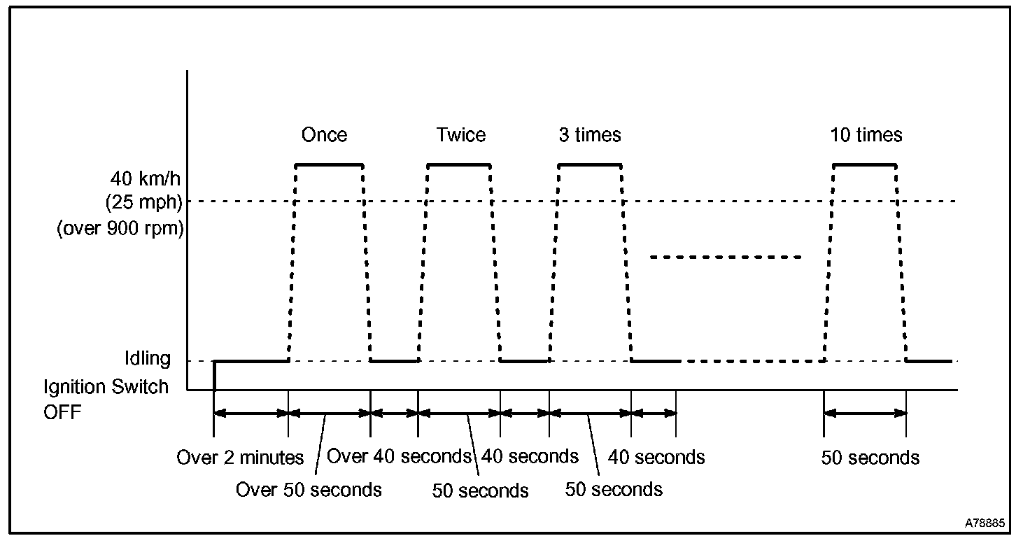 3. Drive the vehicle at 40 km/h (25 mph) or more at least 50 seconds.