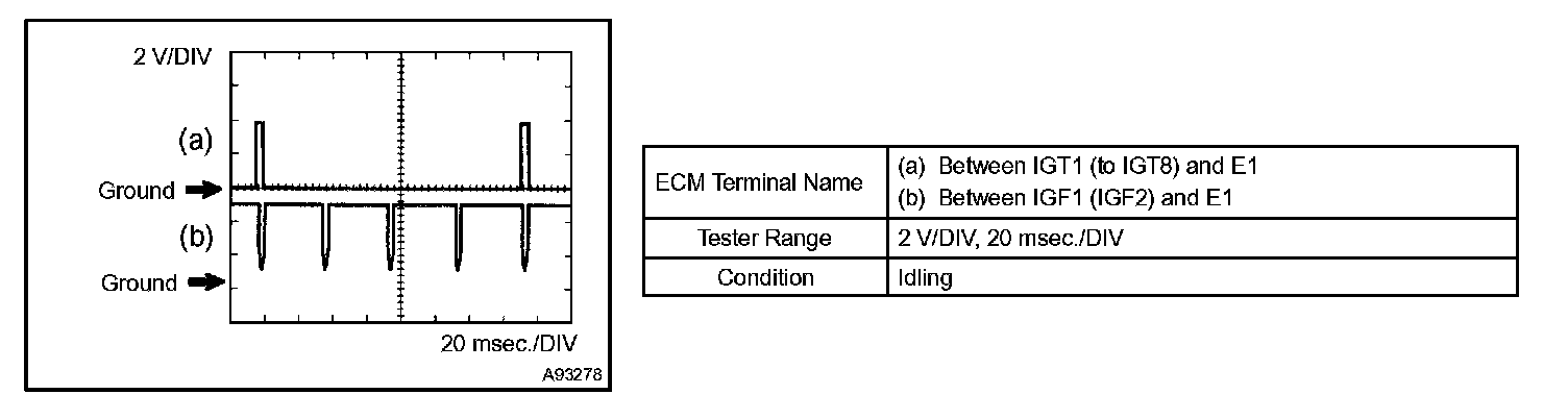 HINT: The wavelength becomes shorter as engine rpm increases. The waveforms and amplitudes displayed differ slightly depending on the vehicle.
