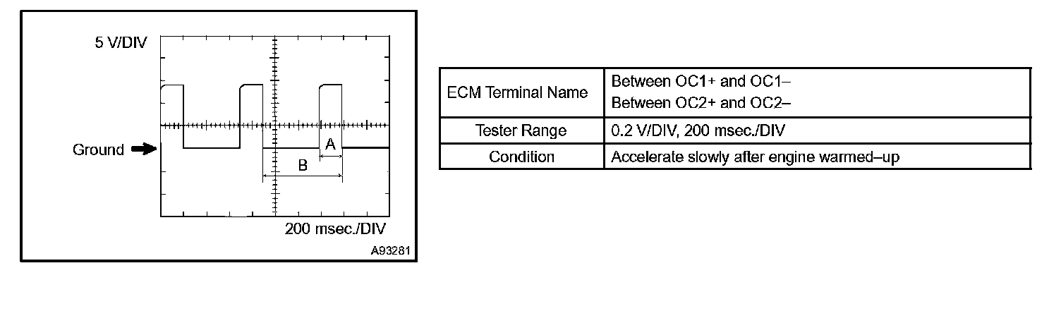 VVT OCV DUTY B1, B2 = A/B x 100 (%)