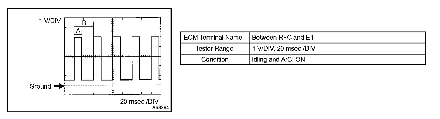 HINT: The duty ratio (labeled A and B in the illustration) changes depending on the engine coolant temperature.