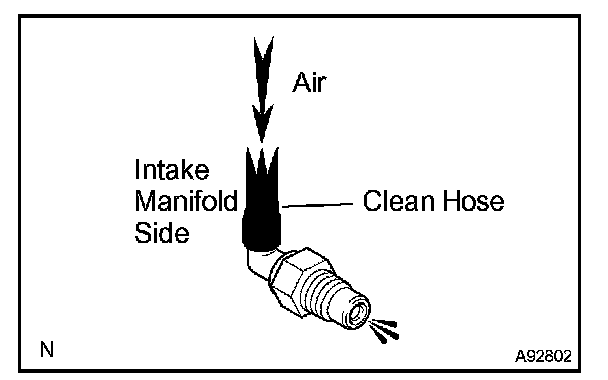 2. Blow air from the intake manifold side of the engine, and check that air passes through with difficulty.