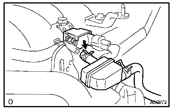 a. Start the engine. Disconnect the vacuum hose as shown in the illustration.