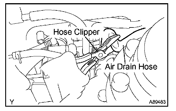 1. Close the air drain hose at the marked position with a hose clipper or similar tool.