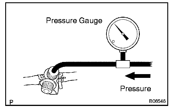 HINT: If the pressure does not decrease when the fuel tank cap is removed, then the hose which connects the service port to the fuel tank is blocked.