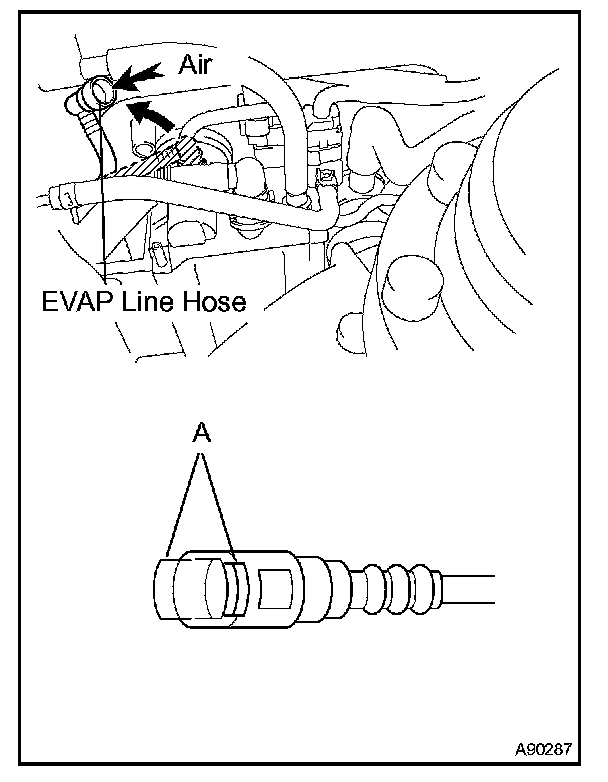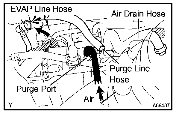1. If air can flow freely from the purge port through to the EVAP line hose, the fuel cutoff valve and fill check valve are operating normally. Go to step (d).