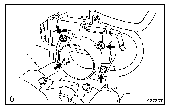 a. Install a new gasket and the throttle body with the 2 bolts and 2 nuts.