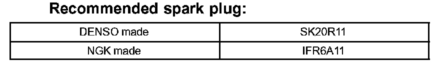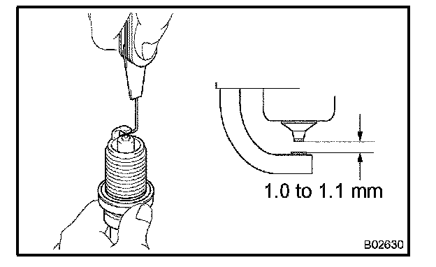 Correct electrode gap for new spark plug: 1.0 to 1.1 mm (0.039 to 0.043 in.)