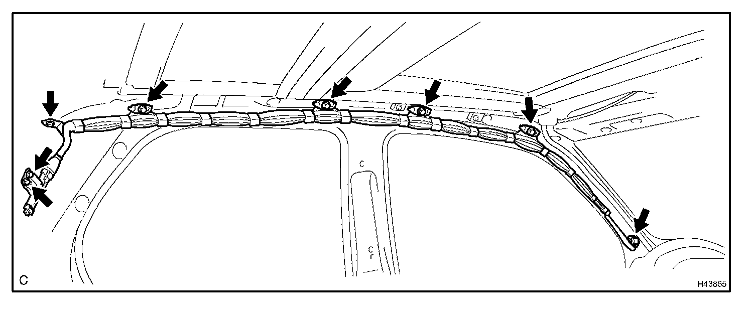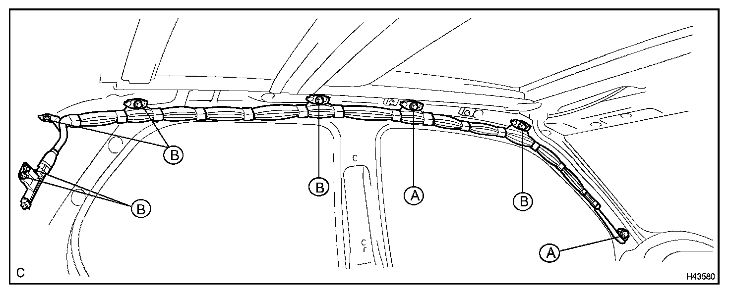 b. Remove the 8 bolts and the curtain shield airbag assy LH.