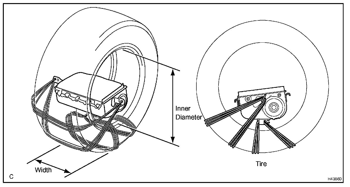 NOTE: To avoid damaging the SST connector and wire harness, do not lock the secondary lock of the twin lock. Also, secure some slack for the SST wire harness inside the tire.