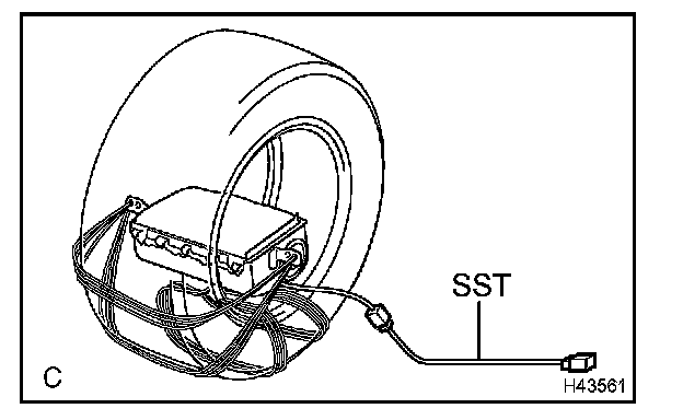 NOTE: Do not place the SST connector under the tire because it could be damaged.