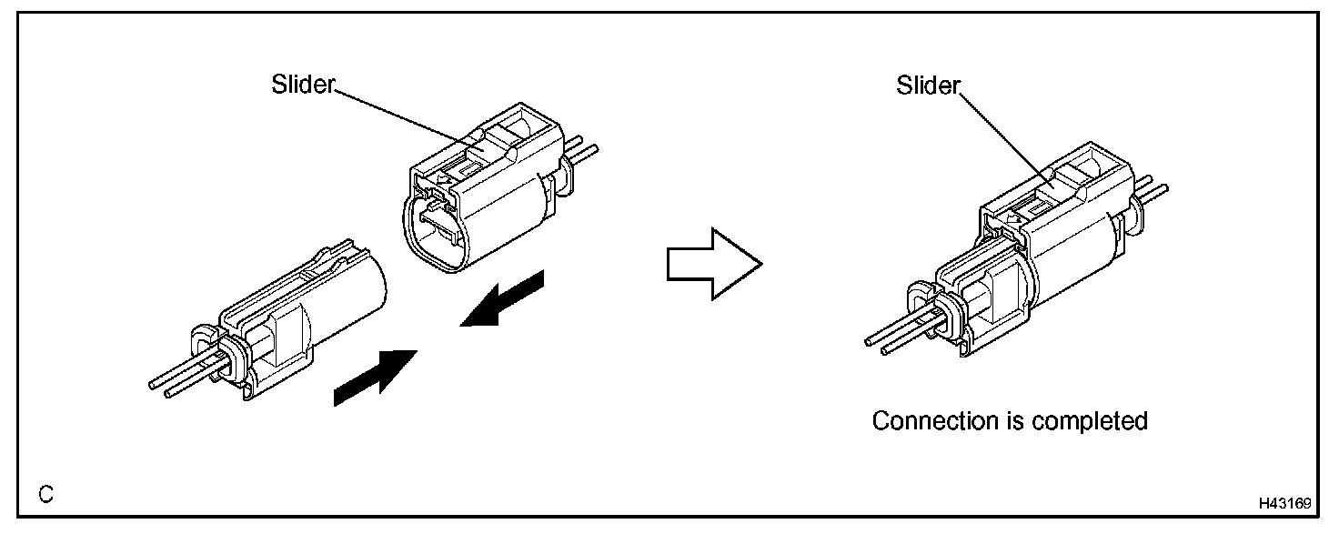 a. Connect the connector as shown in the illustration. (When locking, make sure that the slider returns to its original position and a click sound can be heard.)