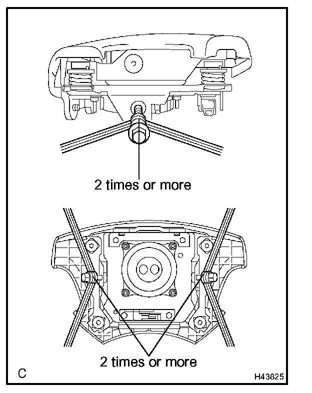 CAUTION: Make sure that the wire harness is tight. If there is slack in wire harness, the horn button assy may become loose due to the shock when the airbag is deployed. This is highly dangerous.