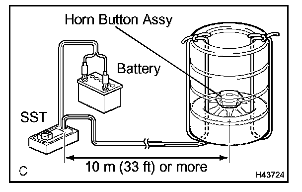 - When deploying the airbag, perform the operation at least 10 m (33 ft) away from the horn button assy.