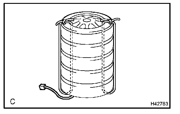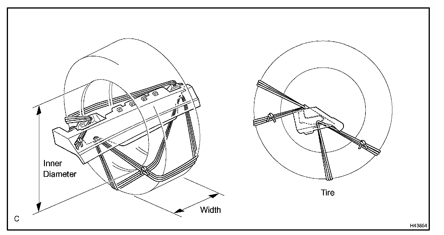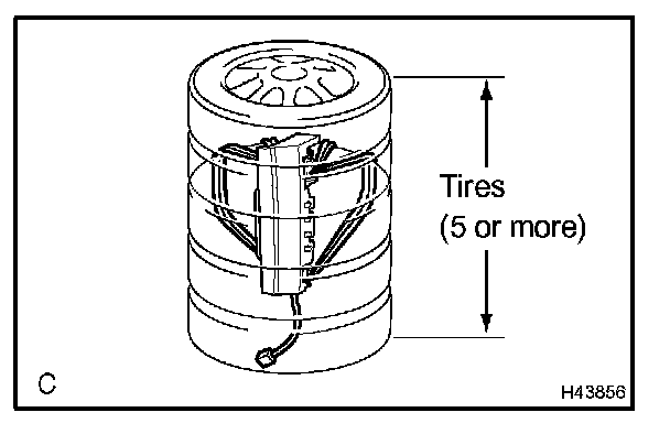 2. Place at least 2 tires over the tire which the instrument panel airbag assy lower No.2 is tied to. The top tire should have the disc wheel installed.