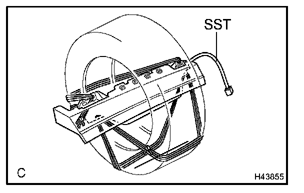 NOTE: To avoid damaging the SST connector and wire harness, do not lock the secondary lock of the twin lock. Also, secure some slack for the SST wire harness inside the tire.