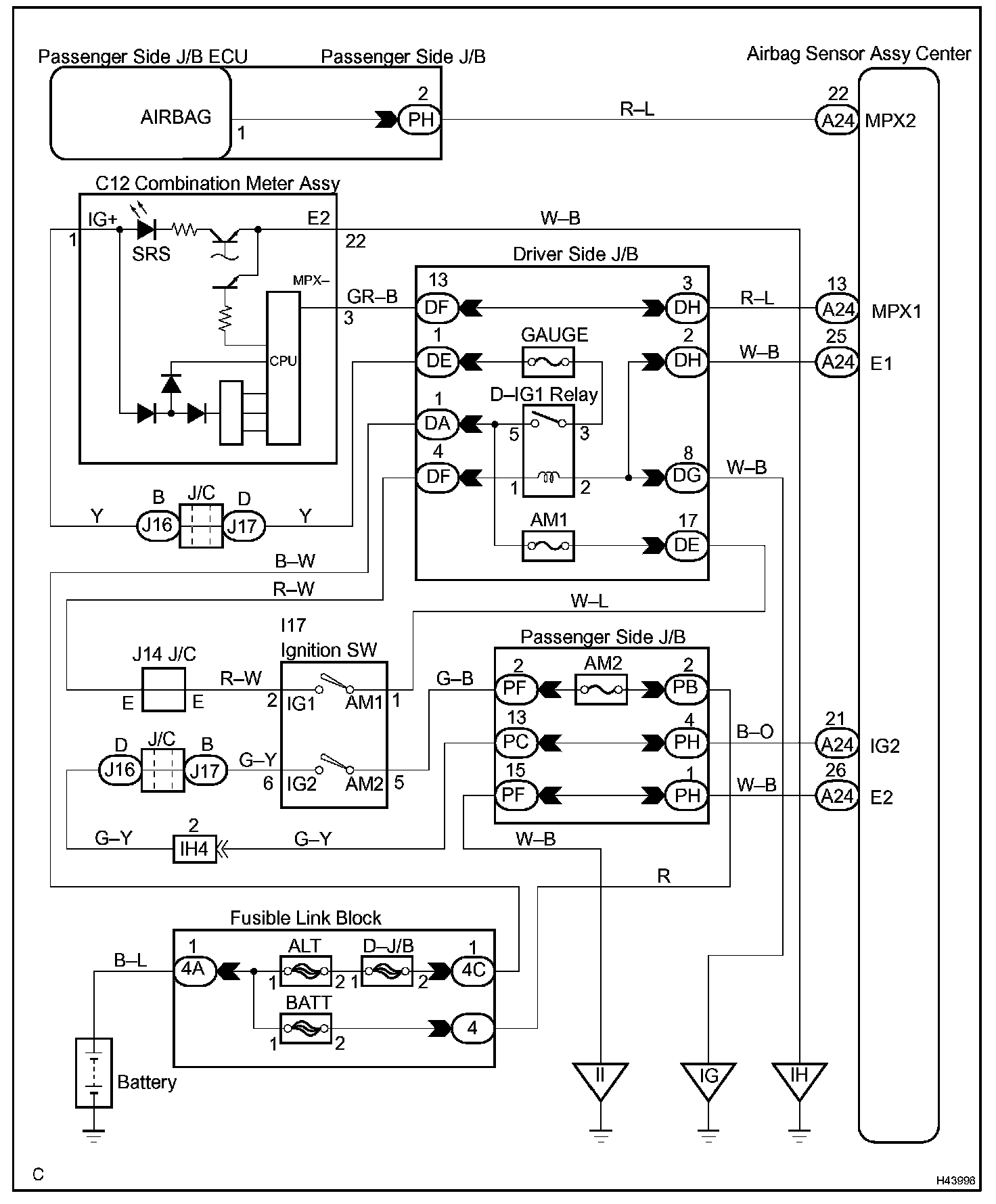 The SRS warning light is located on the combination meter assy.