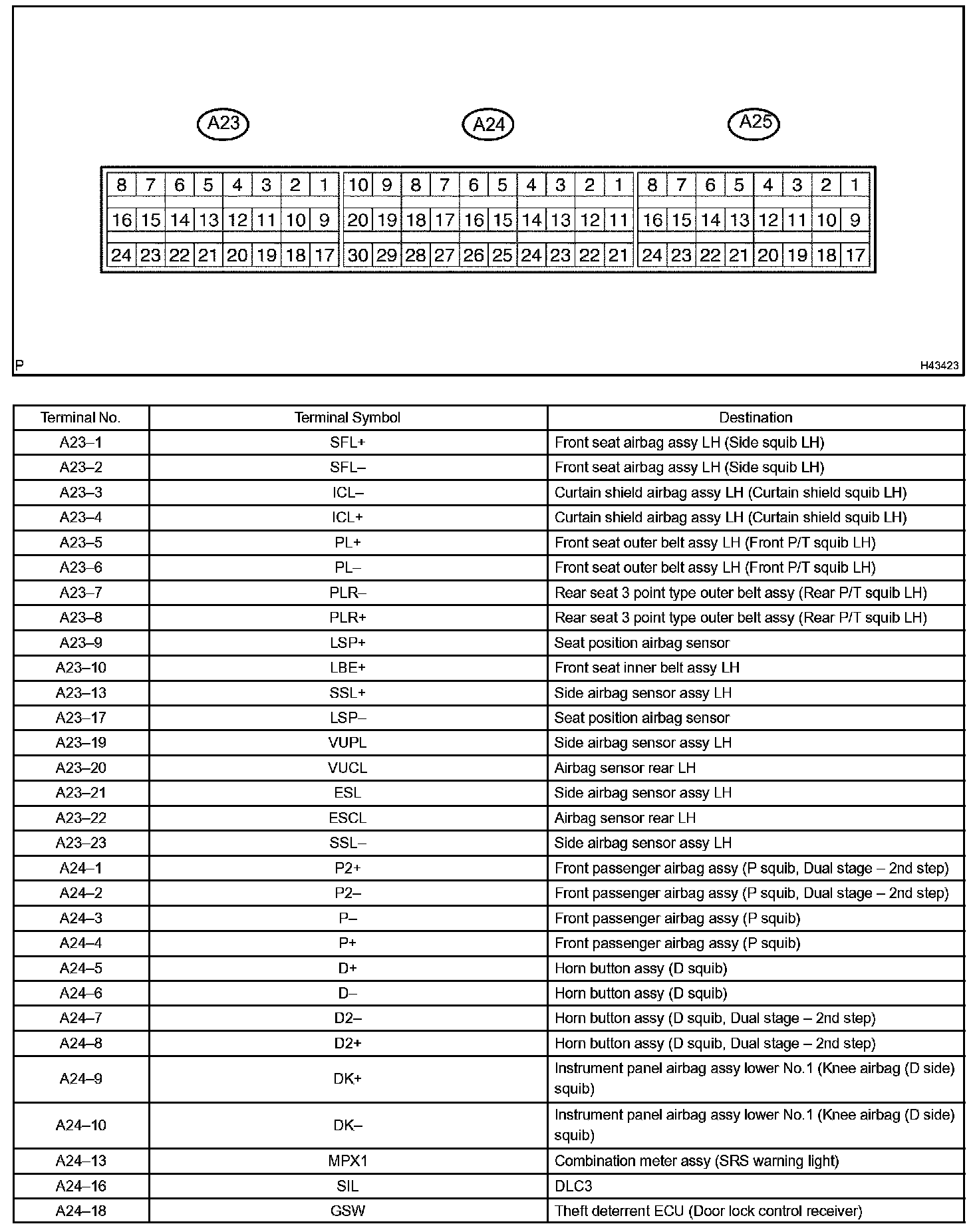 Terminals Of ECU/Pinouts - Airbag Sensor Assy Center Part 1: