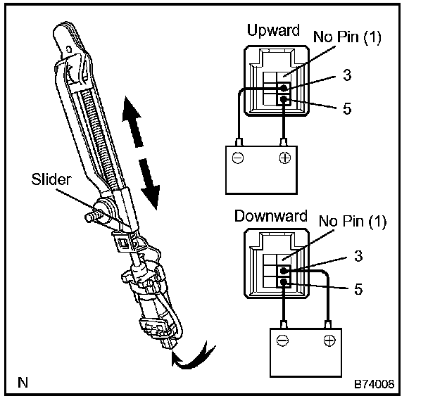 b. Apply battery voltage and check operation of the belt anchor adjuster.
