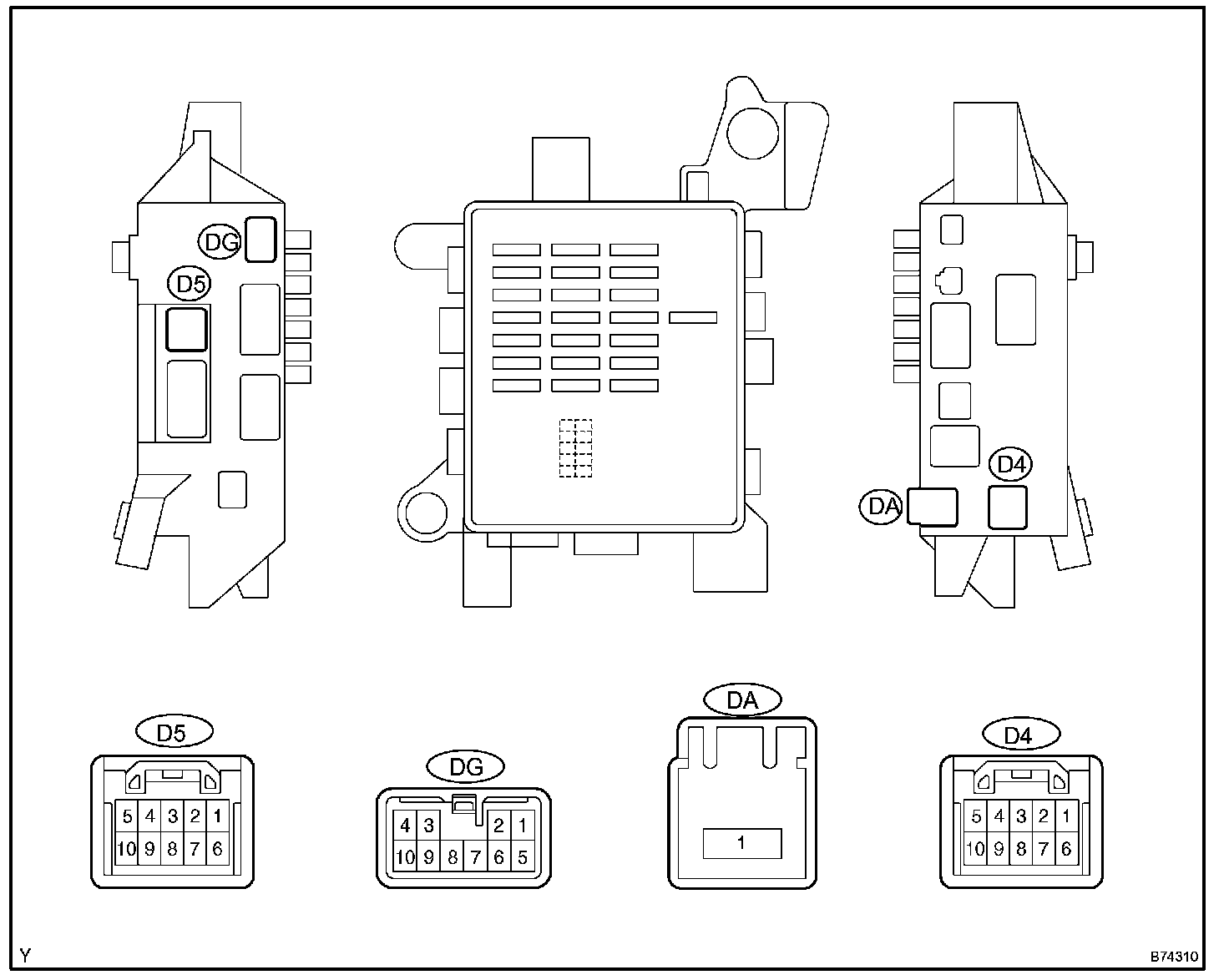 a. Disconnect the DA, DG J/B and D5 ECU connectors.