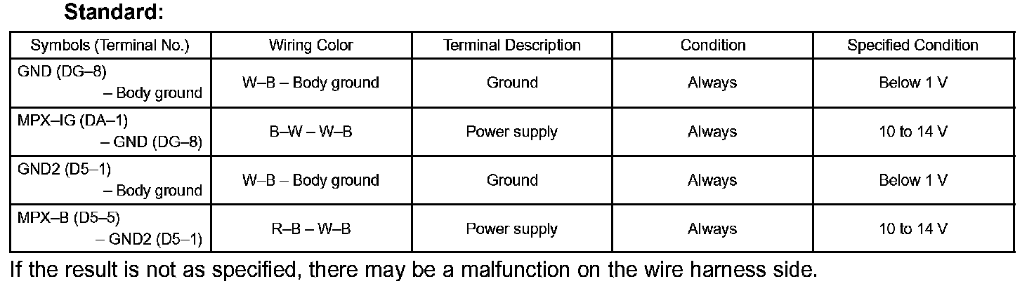 b. Measure the voltage of the wire harness side connectors.